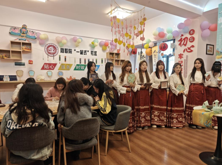 值得关注的是,本次活动还同步开启 “线上 + 线下” 成果宣传模式。线下在贤德楼一站式服务大厅搭建“宋锦 DIY 成果展区”,通过作品陈列、制作过程照片墙、文化资料展板,全方位呈现活动成果,志愿者现场为参观师生讲解作品背后的设计思路与宋锦文化知识。线上则通过抖音等平台,发布活动照片、视频及学生心得。