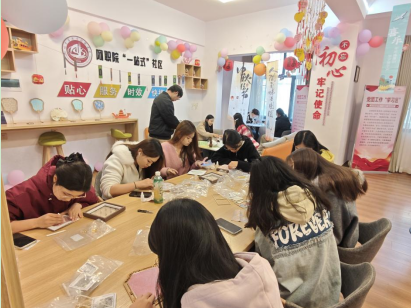 经过近两小时的创作,各小组陆续完成作品。在“作品交流与修饰”环节,大家纷纷展示成果:独特的创意与细腻的制作赢得阵阵好评。根据互评建议,学生们进一步修剪丝线、添加装饰配件,部分同学还将作品装入定制礼盒,让手作更具纪念意义。活动最后,工作人员对所有作品进行登记,为后续成果展示做好准备。