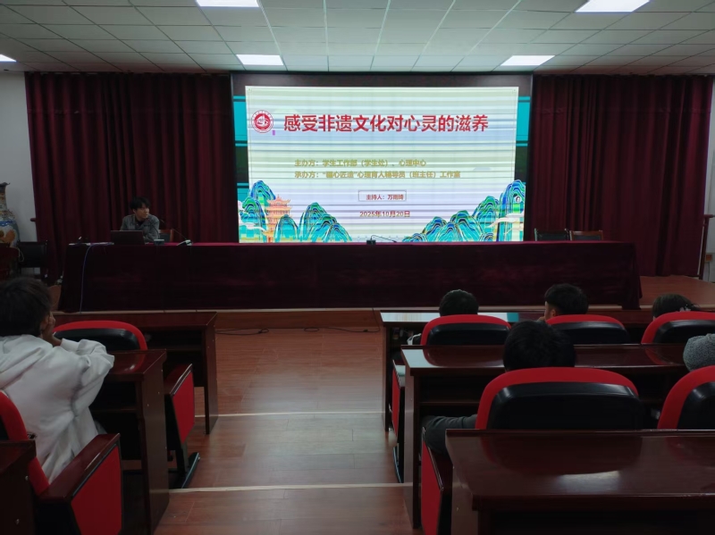讲座第一阶段,来自“疆心匠造”辅导员(班主任)工作室的万雨琦老师,以“感受非遗文化对心灵的滋养”为主题,创新将非遗文化与心理健康教育相融合,通过解读文化传统中蕴含的心理调适智慧,为在场同学开启了一场“非遗融心”的独特心灵之旅,让同学们在感受传统文化魅力的同时,收获了心灵滋养的新路径。
