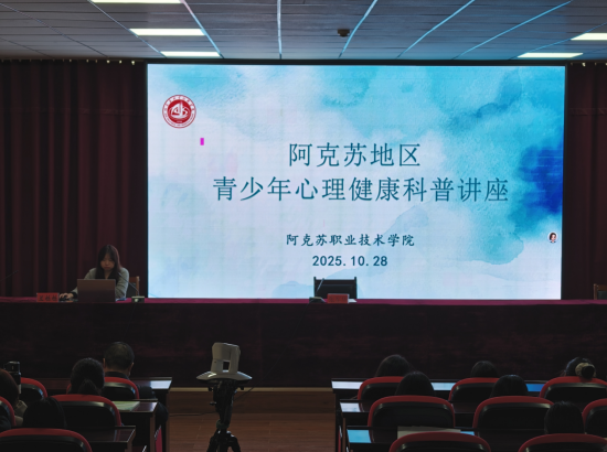 为深入推动心理健康教育工作,进一步提升学生心理健康水平,营造积极向上的校园氛围,2025年10月28日,阿克苏职业技术学院特邀阿克苏地区第四人民医院心理治疗师兰栋栋开展阿克苏地区青少年心理健康科普讲座。阿克苏职业技术学院学生工作部部长张军华出席并主持,来自阿克苏职业技术学院的学生代表以及七县两市十一所职业院校的学生通过“线下集中+线上直播”的方式参加了此次讲座。